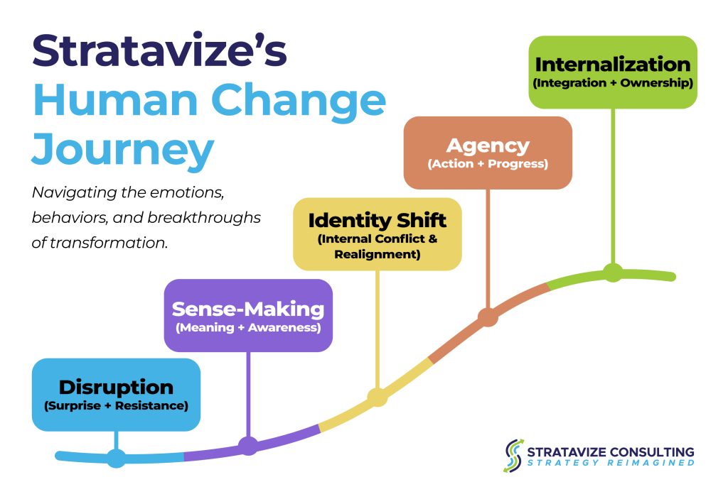 This is where the Stratavize Human Experience of Change Journey becomes essential. It gives you a roadmap to move from decision to sustainable action: